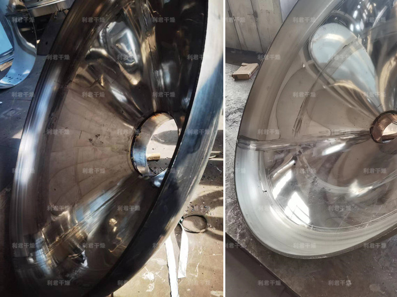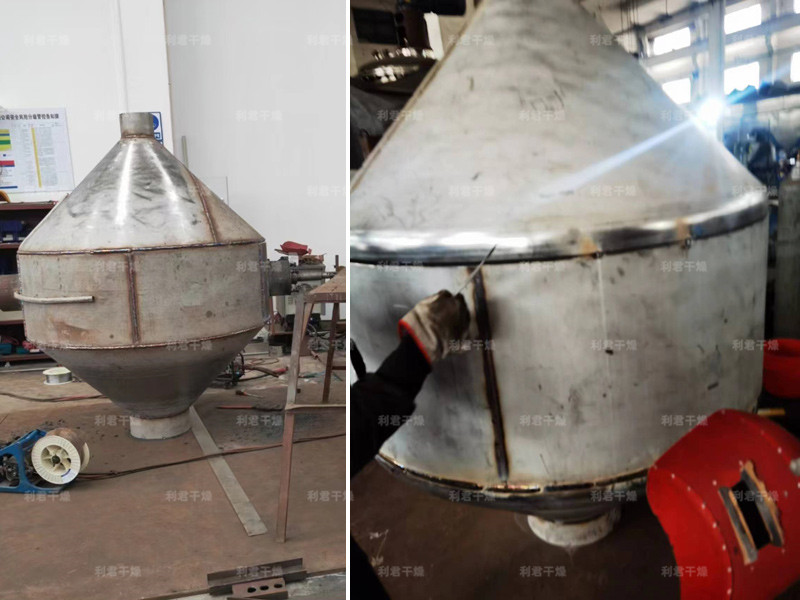 ◎在動力驅動下,罐體作緩慢旋轉,罐內物料不斷地混合,從而達到強化干燥的目的。